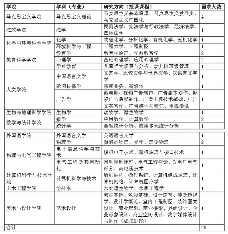 學校現有16個教學單位,55個本科專業(含4個專業方向):其中,師范類專業23個,非師范類專業32個,涵蓋理學、工學、文學、教育學、藝術學、法學、經濟學、管理學、歷史學九個學科門類。有4個一級學科碩士學位授權點,3個碩士專業學位授權點。擁有高臺和新泉2個校區,占地面積166.07萬平方米,教學設施設備先進,教學環境舒適。圖書館藏書131.55萬冊,電子圖書約60萬冊,各類文獻數據庫12個;校園網及5G通信網絡覆蓋全校,擁有完善的較高標準的教學實驗設備和文化、體育、衛生等設施。